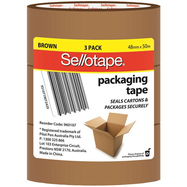 SELLOTAPE PACKAGING TAPE POLYPROPYLENE 48MM X 50M BROWN PACK OF 3
