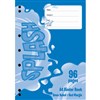 - high quality white 60gsm paper with blue ruled lines and a red margin on 2 sides of each page