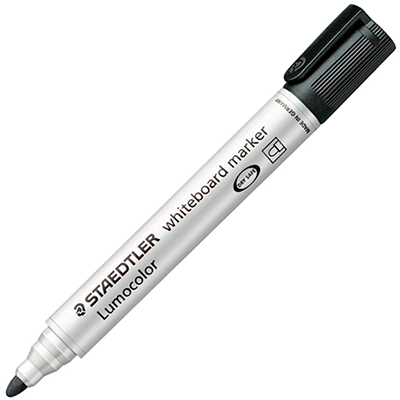 Staedtler 351 Lumocolor whiteboard marker can be dry-wiped from whiteboards and surfaces like glass and porcelain without leaving a trace