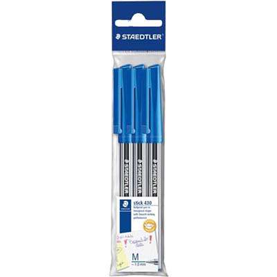 STAEDTLER 430 STICK BALLPOINT PEN MEDIUM BLUE PACK 3