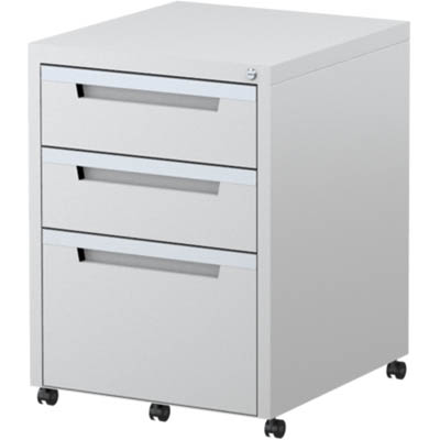 STEELCO CLASSIC MOBILE PEDESTAL 3-DRAWER LOCKABLE 630 X 470 X 515MM WHITE SATIN