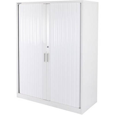 STEELCO TAMBOUR DOOR CABINET 3 SHELVES 1200H X 1200W X 463D MM SILVER GREY