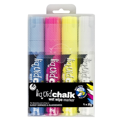 TEXTA LIQUID CHALK MARKER WET WIPE CHISEL 15MM ASSORTED WALLET 4