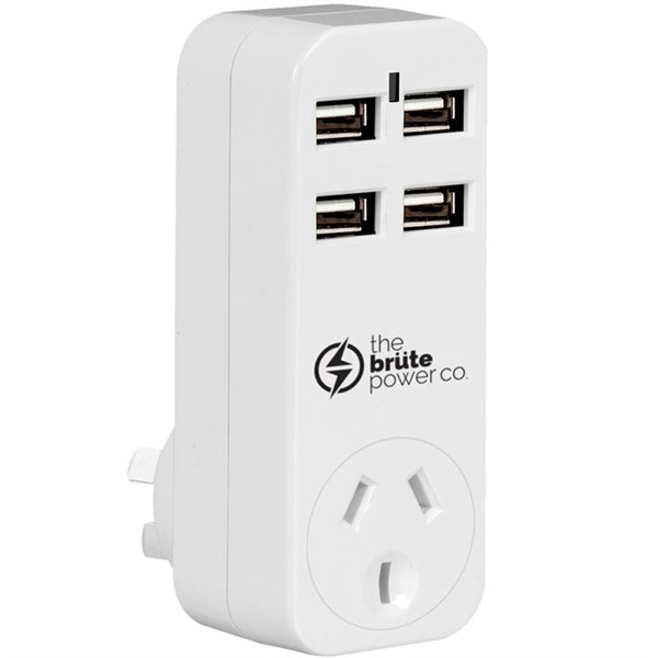 The Brute Power Co. adapter comes with one power outlets and 4 USB ports allowing the charging of two devices at the same time