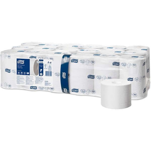 The Tork Soft Coreless Mid-Size Toilet Roll Premium offers a superior look and feel with the right performance