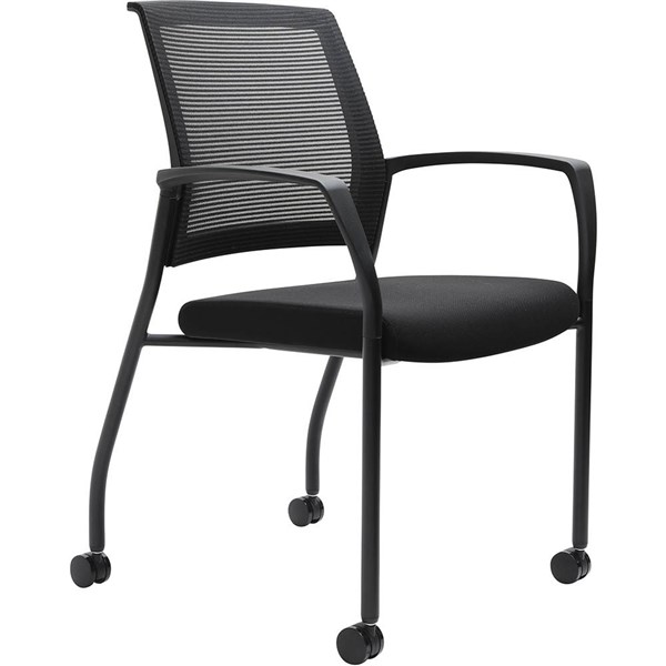URBIN 4 LEG MESH BACK ARMCHAIR CASTORS BLACK FRAME BLACK SEAT