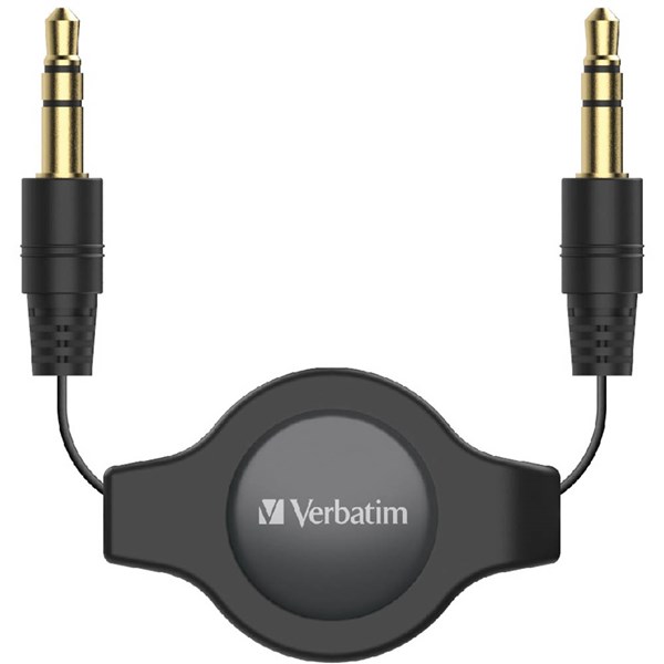 VERBATIM AUX AUDIO CABLE RETRACTABLE 3.5MM 750MM BLACK