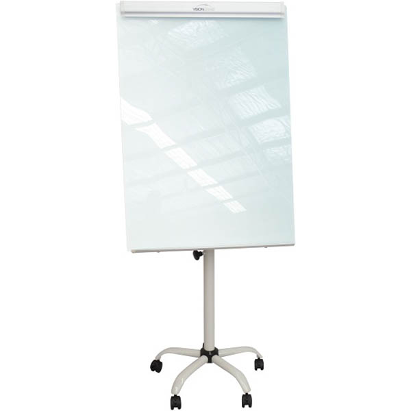Visionchart magnetic glass flipchart stand on single support and castor wheels