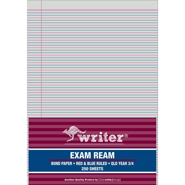 WRITER EXAM PAPER QLD RULED YEAR 3/4 12MM A4 WHITE 250 SHEETS