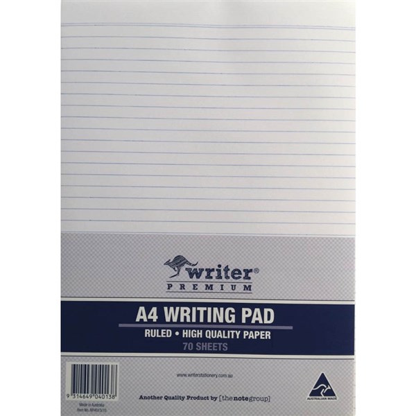 WRITER OFFICE PAD 8MM RULED 50GSM 80 SHEETS A4 WHITE