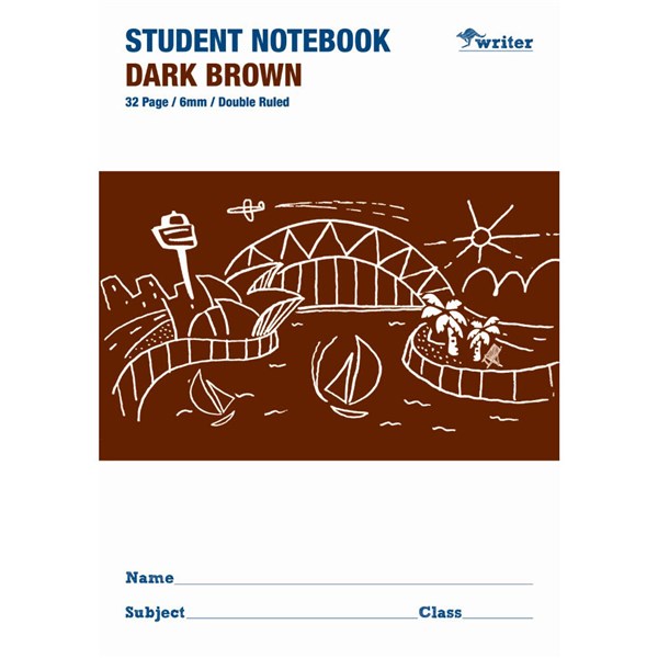 WRITER STUDENT NOTEBOOK 6MM DOUBLE RULED/GUIDE 32 PAGE 250 X 175MM DARK BROWN