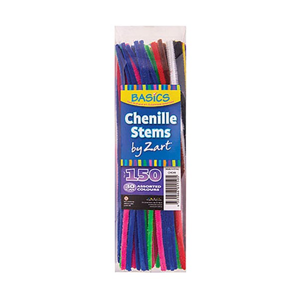 ZART CHENILLE STEMS 300MM ASSORTED PACK 150