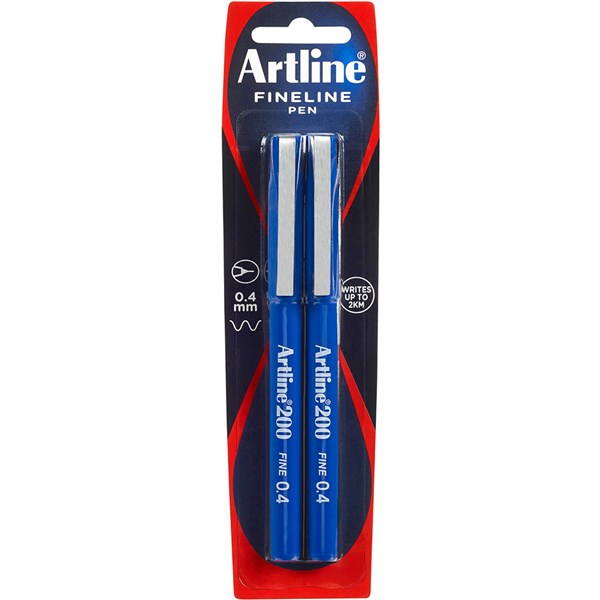 ARTLINE 200 FINELINER PEN 0.4MM BLUE PACK 2
