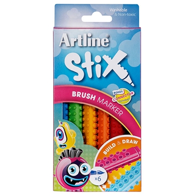 ARTLINE STIX BRUSH MARKER ASSORTED PACK 6