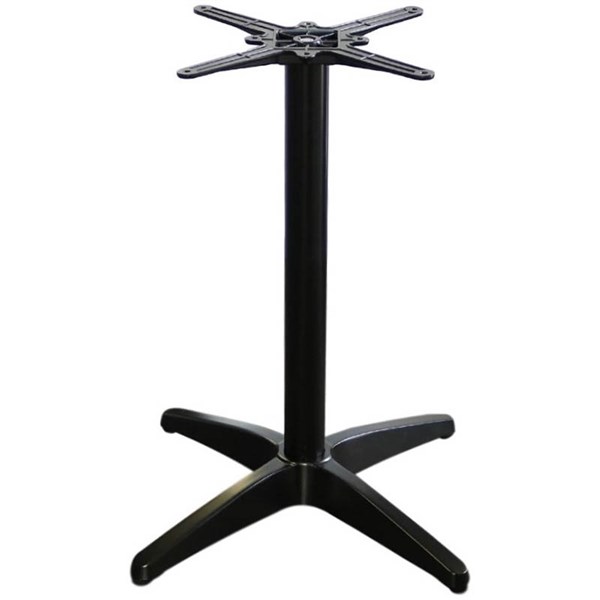 Quality black powdercoated aluminium table base suitable for indoor and outdoor use in all commercial applications