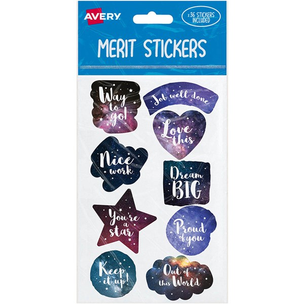 AVERY 698003 MERIT STICKERS COSMOS PACK 36