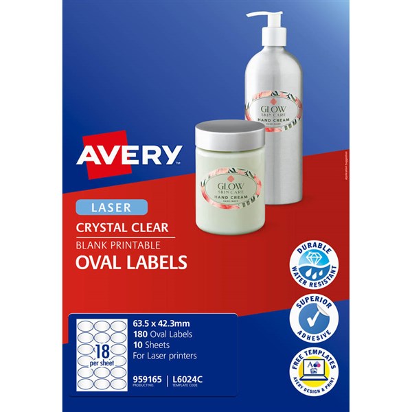 AVERY 959165 L6024C MULTI-PURPOSE LABELS OVAL CLEAR PACK 18