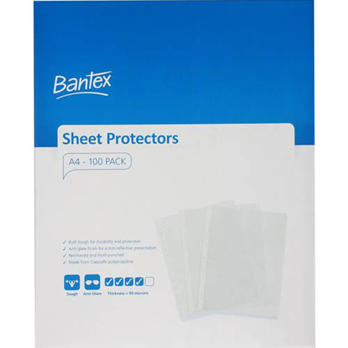 BANTEX TOUGH SHEET PROTECTORS 90 MICRON A4 CLEAR BOX 100