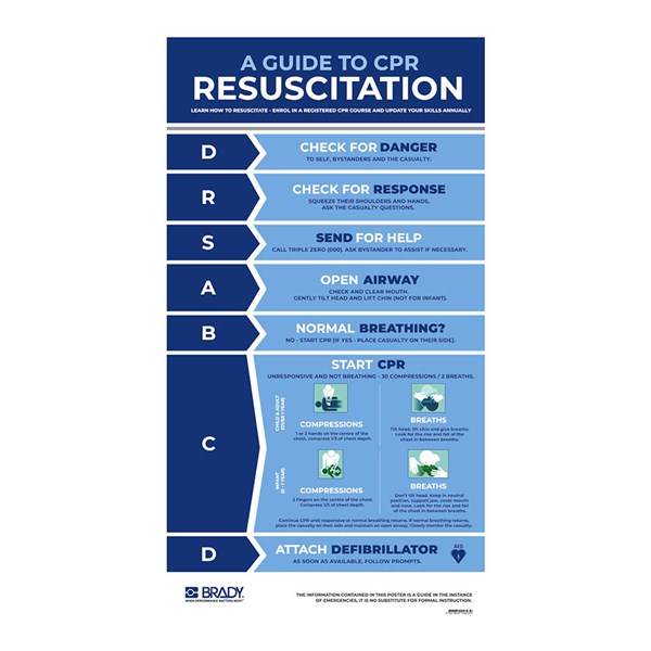 BRADY ADULT RESUSCITATION INFORMATION SIGN (CPR) 420 X 700MM POLYPROPYLENE