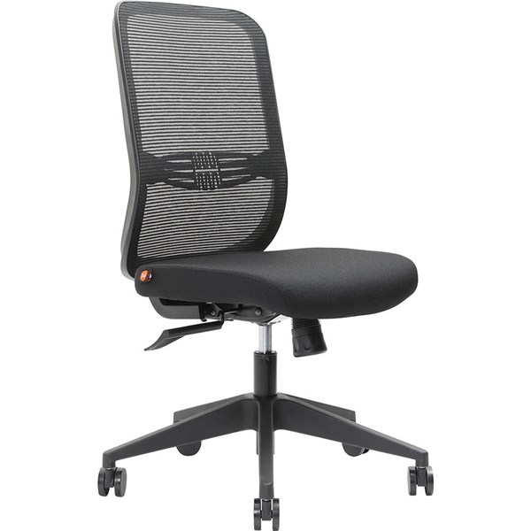 - Upholstered with black mesh back and B-20 black fabric seat and a 5-start nylon base