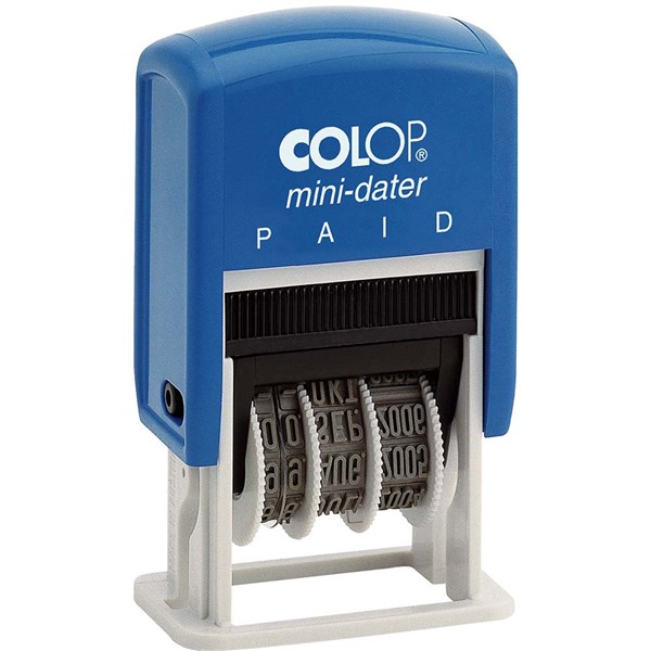 COLOP S160/L2B MINI-DATER PRINTER SELF-INKING STAMP PAID 4MM BLUE/RED