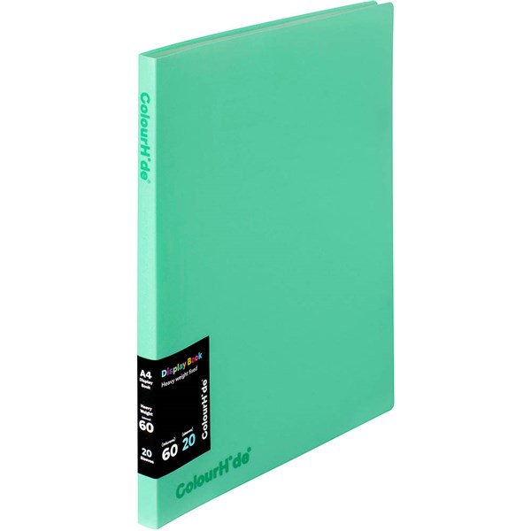 COLOURHIDE DISPLAY BOOK FIXED 20 POCKET A4 BISCAY GREEN