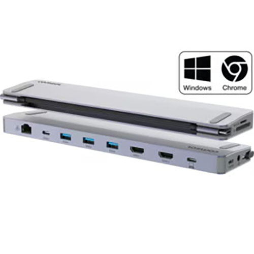 The Comsol USB-C Dual HDMI Monitor 12 Port Docking Station (CM24HDA) is a powerful all-in-one solution designed to expand the connectivity of your USB-C enabled laptop or device