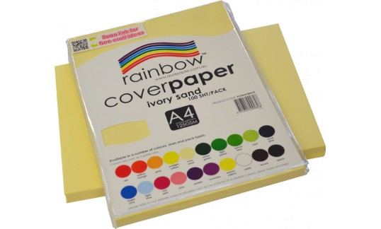 Rainbow Cover Paper A4 100 Sheets Ivory Sand.A premium paper available in a number of colours, sizes and pack types; Rainbow Cover Paper is a multi function paper product for both art & craft as well as office stationery needs. Rainbow Cover Paper can be used as a drawing paper for a number of medium types, as well as a craft paper and direct to print paper for items such as certificates.