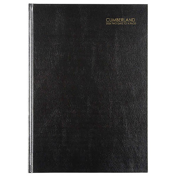 CUMBERLAND 42ECBK CASEBOUND DIARY 2 DAYS TO PAGE A4 BLACK