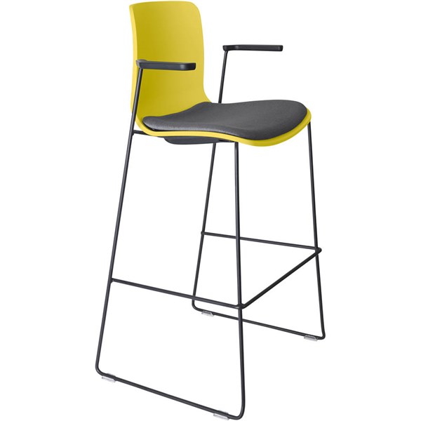 DAL ACTI BAR STOOL SLED BASE HIGH 760MM ARMS BLACK ARM-PADS AND BLACK POWDERCOAT FRAME YELLOW POLYPROP SHELL