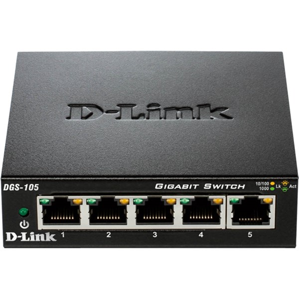 The DGS-105 5-Port Gigabit Unmanaged Desktop Switch offers an economical way for SOHO and small and medium businesses to benefit from the increased bandwidth of Gigabit Ethernet. It provides five Gigabit ports for easy expansion of your network and a quick way to upgrade your network to Gigabit connectivity