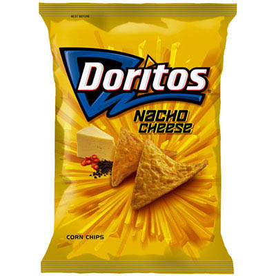 - Picture biting into the cheesy goodness of Doritos Nacho Cheese flavoured corn chips combined with Doritos signature tooth-rattling crunch