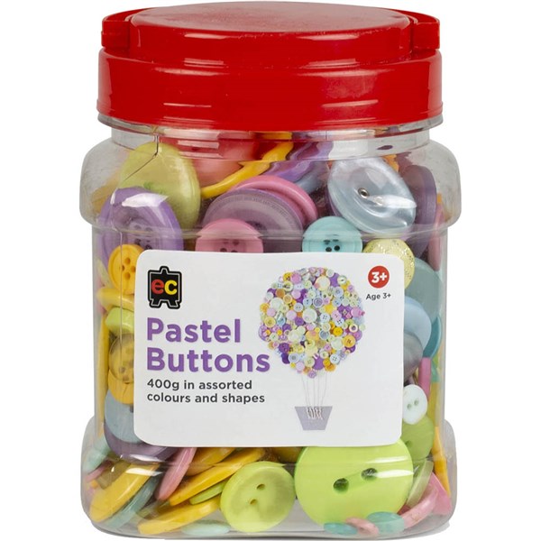 EDUCATIONAL COLOURS BUTTONS PASTEL ASSORTED JAR 400G