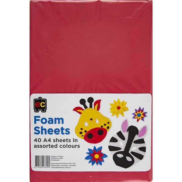 EDUCATIONAL COLOURS FOAM SHEETS A4 PACK 40