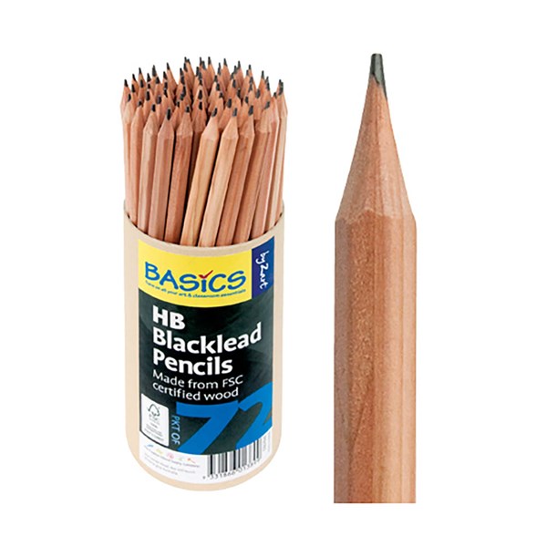 Key Features: Pack of 72 Blacklead Pencils Colour of lead: black High quality HB grade pencil, non-toxic, 100% FSC certified wood. Lead is SV bonded and breakage resistant. Ideal for use in the classroom for drawing, sketching, line work, artwork, stippling and writing. Suitable for all ages Country of origin: China Supplied in a reusable container