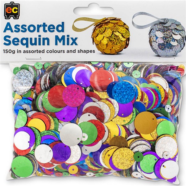 EDUCATIONAL COLOURS SEQUINS EMBOSSED AND NORMAL ASSORTED 150G