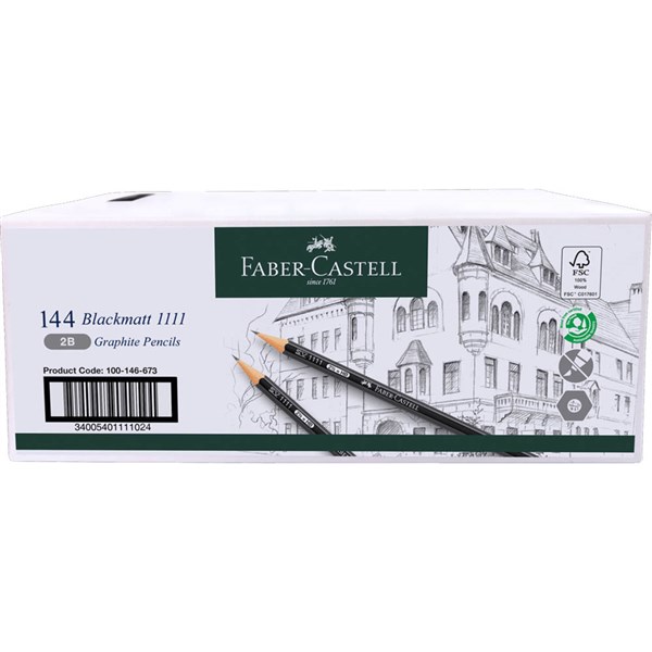 FABER-CASTELL BLACKMATT 1111 GRAPHITE PENCILS 2B BOX 144