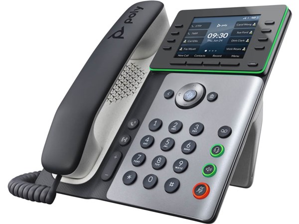 - The phone features HD voice quality powered by Poly audio technology for clear, natural conversations