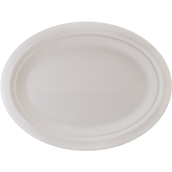 HUHTAMAKI FUTURE FRIENDLY OVAL PLATE SUGARCANE 10 X 8 INCH PACK 50