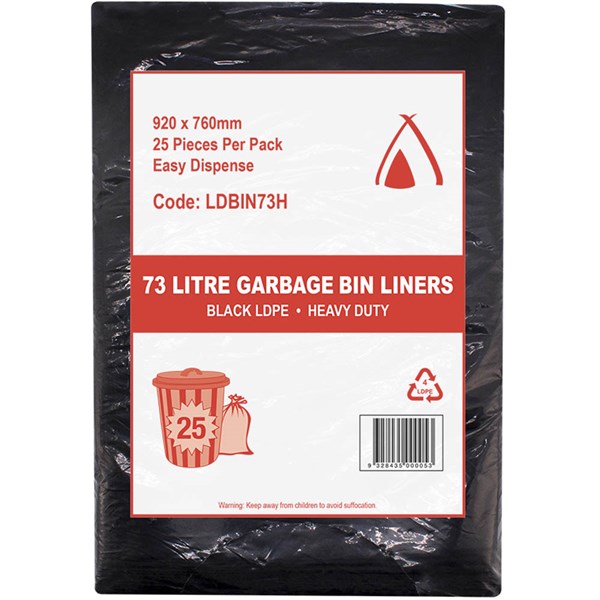 Strong LDPE garbage bin liners suitable for all 73 litre garbage bins