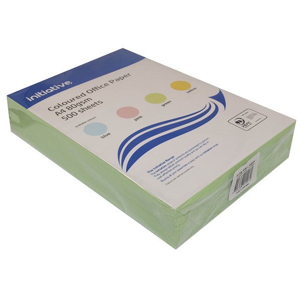 INITIATIVE COLOURS COPY PAPER 80GSM A4 GREEN PACK 500 SHEETS
