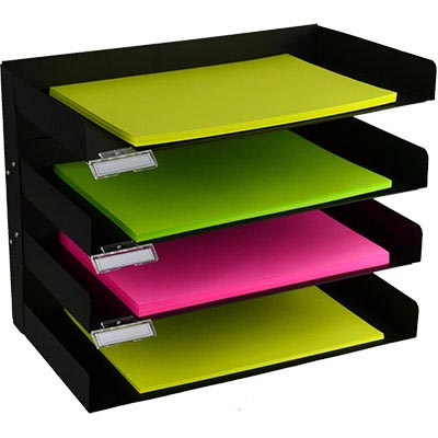 ITALPLAST ADJUSTABLE METAL STATIONERY RACK 4-TIER BLACK