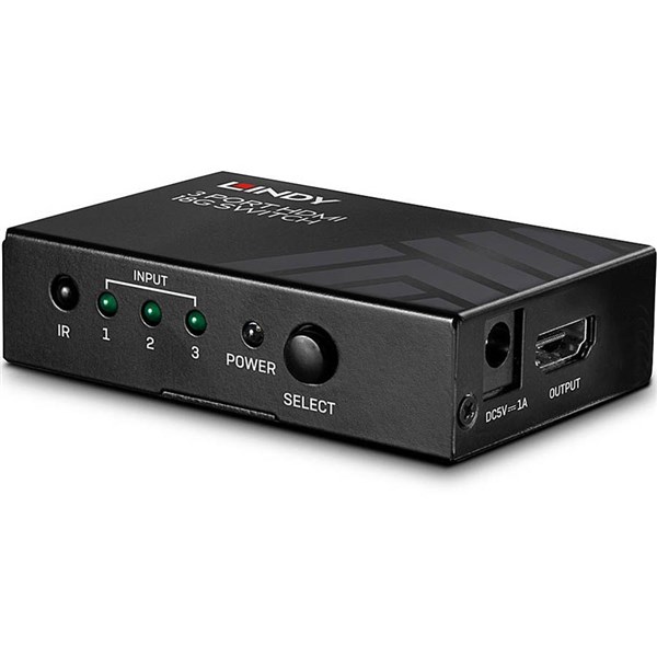 • The Lindy 3 Port HDMI 18G switch is a compact, high quality solution for effortlessly switching between 3 HDMI source devices when connected to a single display