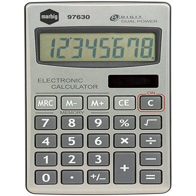MARBIG CALCULATOR HANDHELD 8 DIGIT SILVER