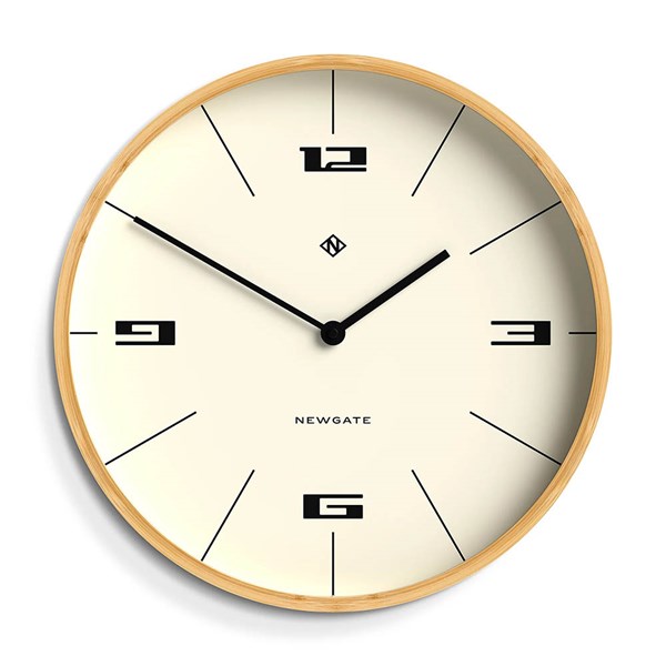 - A modern wall clock with a bamboo case and a minimalist Scandi-inspired design combining functionality with beauty