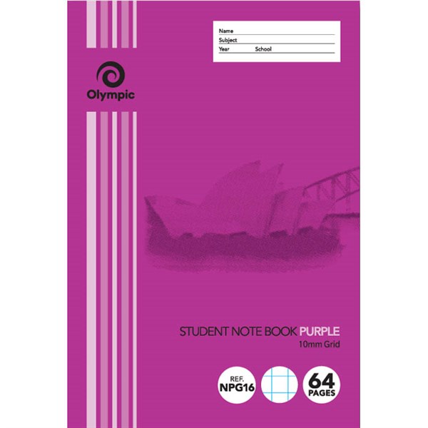 OLYMPIC NPG16 EXERCISE BOOK NSW RULING GRID 10MM 55GSM 64 PAGE 250 X 176MM PACK 20