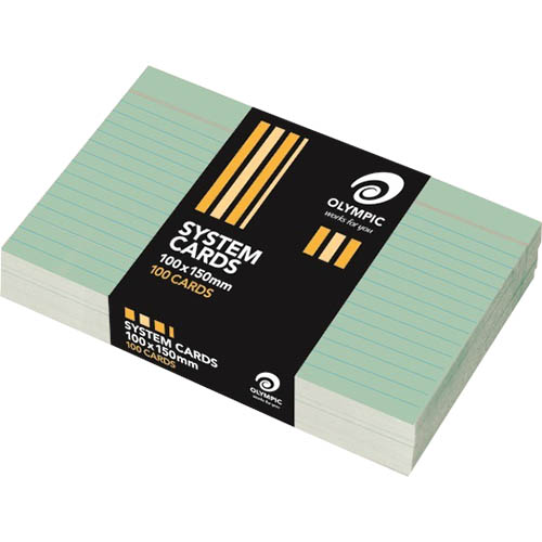 OLYMPIC RULED SYSTEM CARDS 100 X 150MM GREEN PACK 100