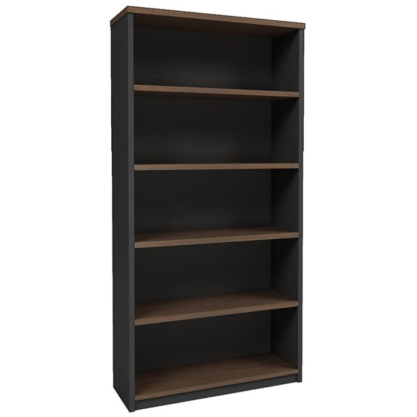 OM PREMIER OPEN BOOKCASE 900 X 320 X 1800MM REGAL WALNUT/CHARCOAL