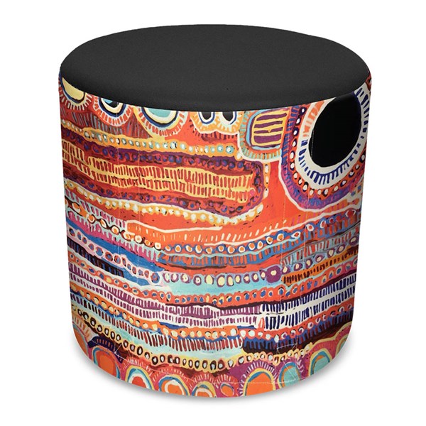- It is also a unique commercial fabrics designed by Nelly Patterson (Indigenous artist) combined with K2 Commercial Black PU Leather to upholster the ottoman