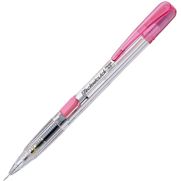 PENTEL PD105 TECHNICLICK MECHANICAL PENCIL 0.5MM CLEAR/PINK BOX 12